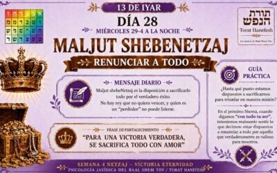 Esta frase, atribuida a Rabí Najman de Breslov, enseña que la persona debe alzar sus ojos por encima de las preocupaciones de la realidad y recordar lo que realmente importa. Pero en la perspectiva jasídica de Jabad, esta frase tiene un significado diferente, mucho más profundo y exigente: no basta con una “contemplación general” sobre…