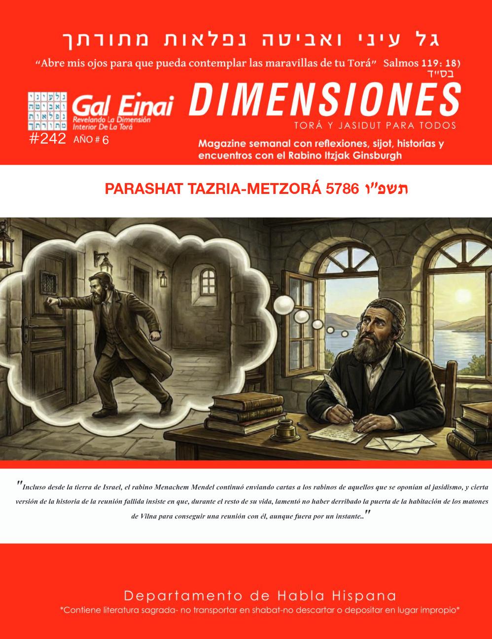 *LA IMPUREZA Y EL JASHMAL* *JUDAÍSMO PARA TODOS* *📖 CABALÁ Y JASIDUT* *PARASHÁ TAZRÍA METZORÁ – IYAR* *DOMINGO 25 NISAN 5786 – 12-3-2026* 🕘*21:00 HORAS DE ISRAEL* 🌍 En vivo desde Israel💻 Por Zoom https://us06web.zoom.us/j/5839538733📺 Transmisión simultánea por YouTube 👉 www.youtube.com/galeinaienespañol En estas porciones leemos sobre la tzaraat (lepra espiritual), una afección que se manifestaba…