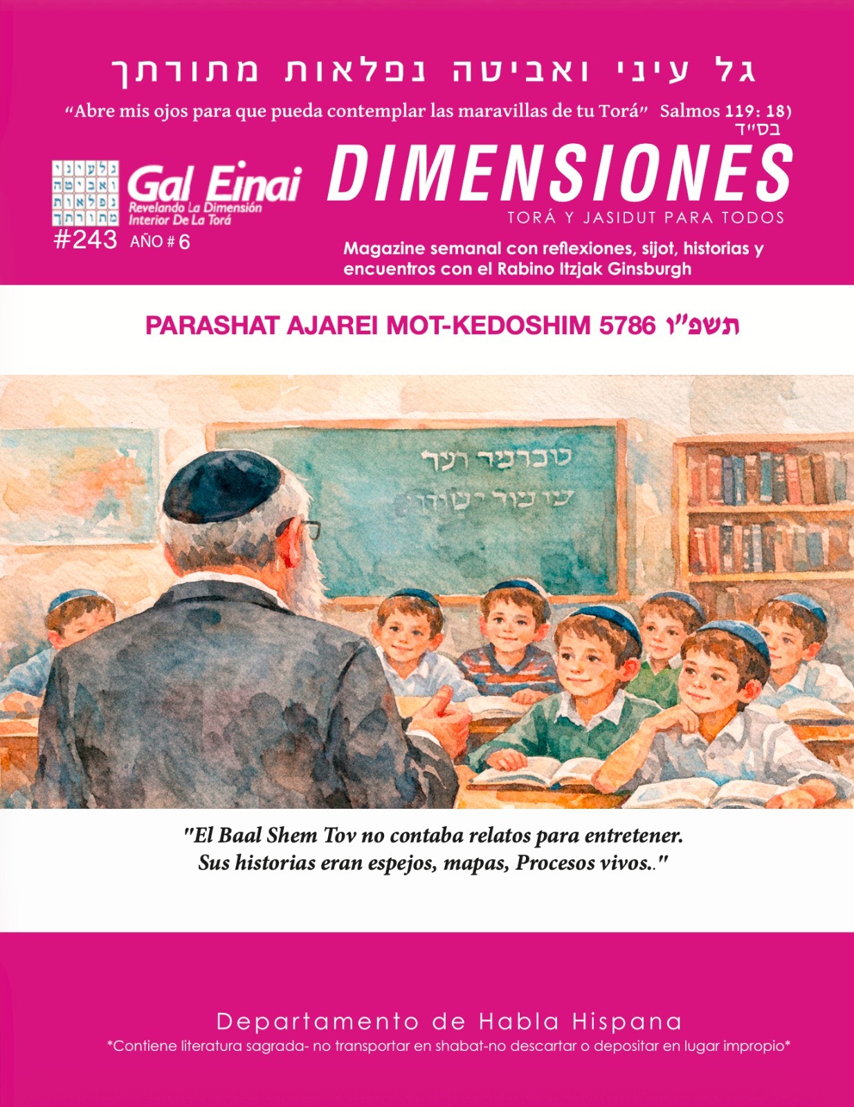 DEL SANTUARIO A LA CALLE: EL ARTE DE VIVIR CON SANTIDAD 📖 CABALÁ Y JASIDUT PARASHÁ AJAREI MOT KEDOSHIM DOMINGO 2 IYAR 5786 – 19-4-2026 🕘21:00 HORAS DE ISRAEL 🌍 En vivo desde Israel💻 Por Zoom https://us06web.zoom.us/j/5839538733📺 Transmisión simultánea por YouTube 👉 www.youtube.com/galeinaienespañol En la unión de las porciones Ajarei Mot y Kedoshim, la Torá…