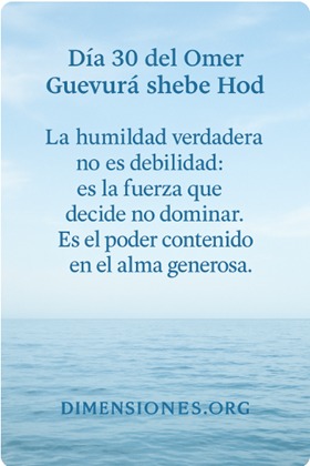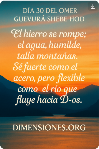 En este trigésimo día de la cuenta del Omer, profundizamos en la sefirá de Guevurá (Fortaleza, Severidad, Disciplina) dentro de Hod (Esplendor, Humildad, Reconocimiento). Es un tiempo para cultivar una fortaleza interior que se manifiesta con humildad, reconociendo nuestros límites y actuando con disciplina sin arrogancia.