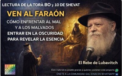 LECTURA DE LA TORÁ BO y 10 DE SHEVATVEN AL FARAÓNCÓMO ENFRENTAR AL MAL Y A LOS MALVADOSENTRAR EN LA OSCURIDAD PARA REVELAR LA ESENCIARabino Jaim Frim “Este material es posible gracias a quienes sostienen este proyecto.” *UNETE A LA COMUNIDAD GAL EINAI EN WHATSAPP*🔗 https://chat.whatsapp.com/EDRw6ZNEiue0DJ9rkzSi4X *DIFUNDE LUZ AL MUNDO*https://galeinai.org/donations/143245/o https://paypal.me/daatl Parashat Bo comienza con … Sigue leyendo LECTURA DE LA TORÁ BO y 10 DE SHEVAT