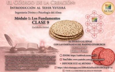 MEDITACIÓN SOBRE EL M-A-S-H-I-AJ SEGÚN EL SÉFER YETZIRÁ Módulo 1 CLASE 9 CURSO DE CABALÁ Y JASIDUT “EL CÓDIGO DE LA CREACIÓN INTRODUCCIÓN AL SEFER IETZIRÁ” dictado por Jaim Frim HOY MIÉRCOLES 🕘*21:00 HORAS DE ISRAEL* Rehovot, 8 de Nisan 5786 – 26 de marzo del 2026, *📍ZOOM:* https://us06web.zoom.us/j/5839538733 *📍YouTube:* 👉 www.youtube.com/galeinaienespañol EL LIBRO DE … Sigue leyendo M1 C9 SEFER IETZIRÁ LAS LETRAS DE MASHÍAJ