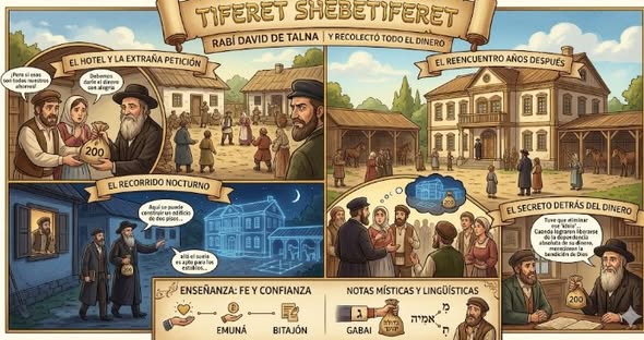 En su lugar, se erguía una estructura nueva y amplia de dos pisos, rodeada de otros edificios auxiliares… exactamente como el Rebe lo había descrito años atrás. El comerciante comprendió entonces que aquel dinero “exigido” no fue una pérdida, sino la semilla de la bendición que permitió al posadero prosperar y convertir su pequeña posada en el magnífico establecimiento que ahora tenía ante sus ojos.